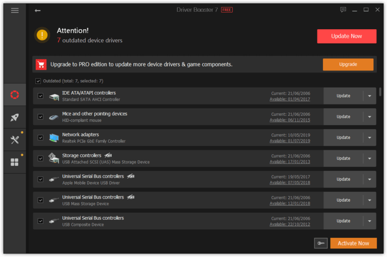 Driver Booster 7 PRO, With its expanded database which supports 3,000,000+ drivers and game components, Driver Booster 7 offers you the easiest way to keep your device drivers and game components up-to-date. Driver Booster 7 can automatically detect any outdated drivers and then replace them with a single click. The brand-new Game Boost feature ensures smooth game experiences. Seven improved tools help you restore the system and fix PC bothersome problems such as no sound, network failure, bad resolution, device error, etc.